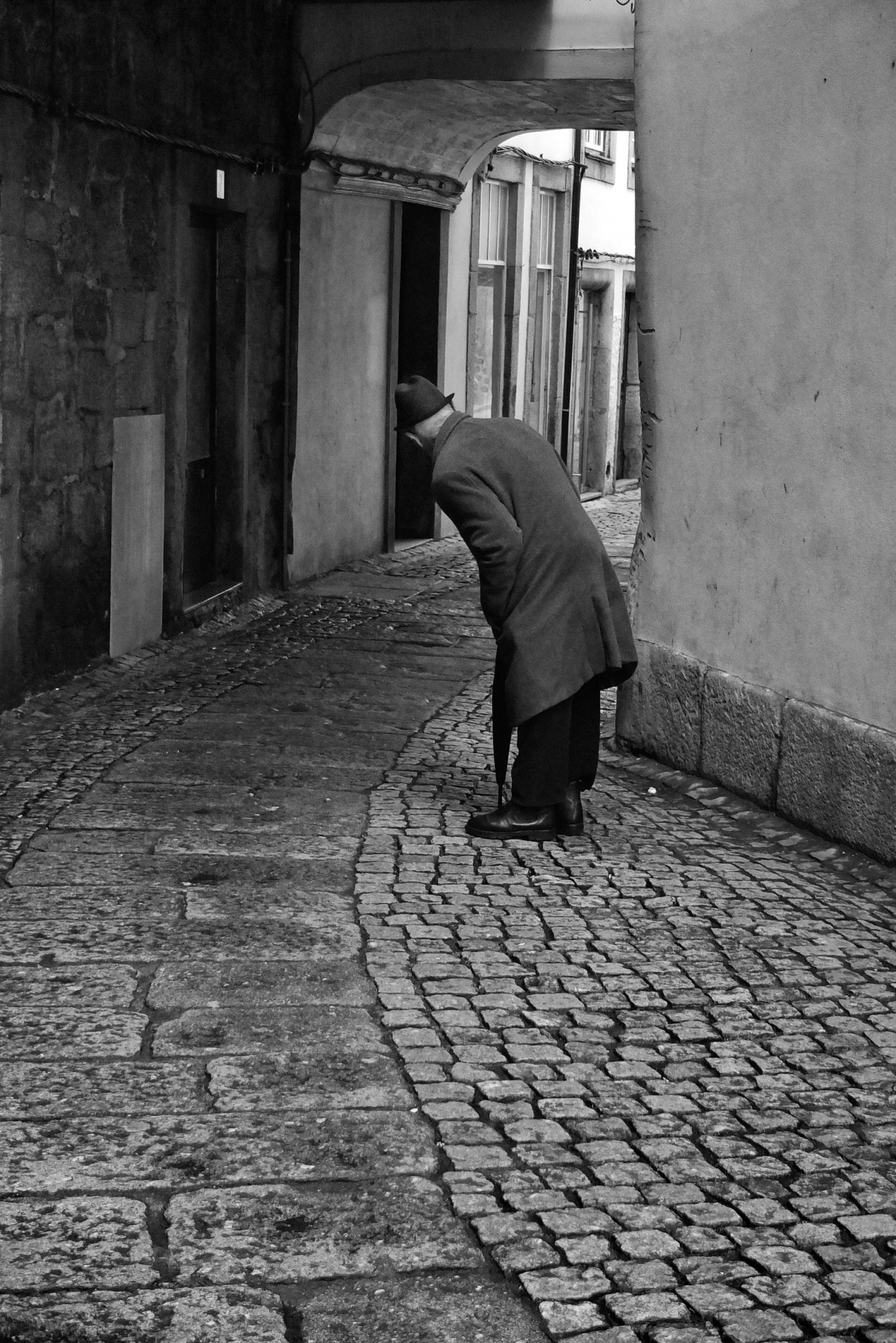 Imagine this photograph taken against a simple or blurred background. It would then be just a random lady looking for the keys in the street.